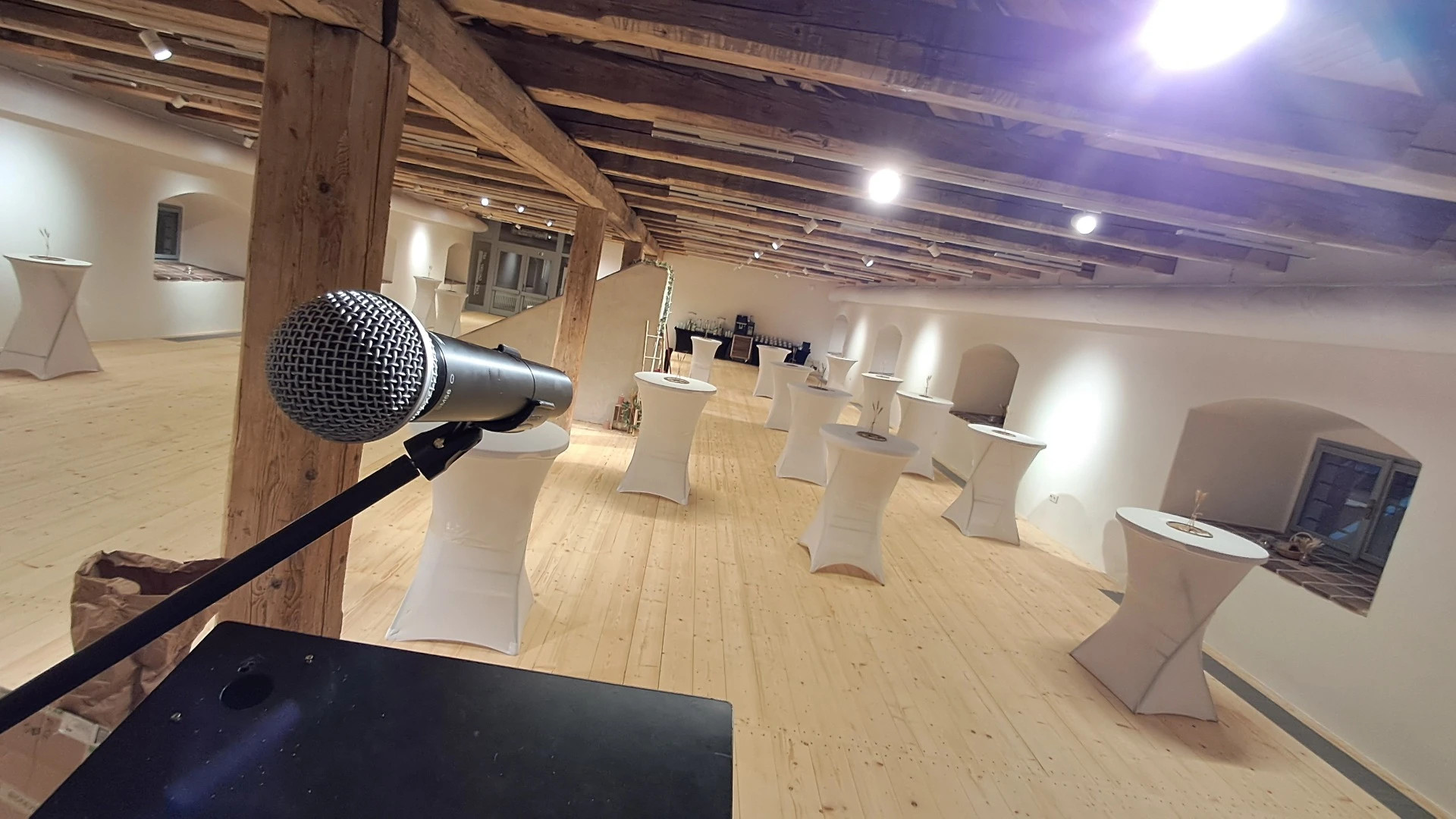 - Dominantou této unikátně zrekonstruované barokní stavby je velký sál s otevřeným krovem.