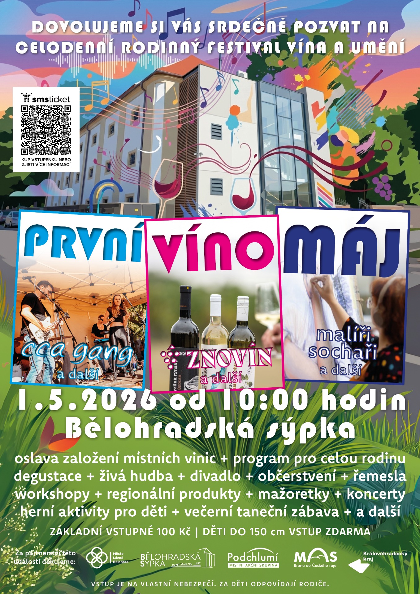 V pátek 1. května vás od 10 hodin srdečně zveme do kouzelných prostor barokní Bělohradské sýpky na událost PRVNÍ VÍNO MÁJ – celodenní rodinný festival vína, umění a prvomájových setkání. V unikátní atmosféře naší historické stavby, ale třeba i na nedalekých Byšičkách, vás čeká den plný oslav. Společně si připijeme na čas lásky a oslavíme nejen první narozeniny místního vinohradu, ale i první úspěšný rok Bělohradské sýpky coby kreativního centra Podkrkonoší.