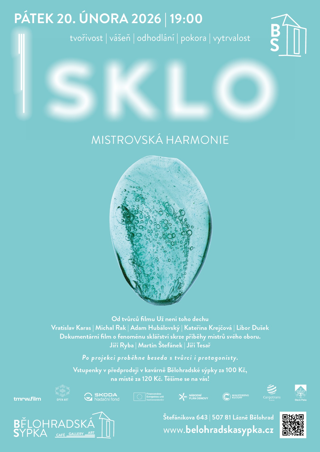 Srdečně vás zveme na inspirativní večer, který nás v polovině února zavede do křehkého, a přitom fascinujícího světa sklářského umění. Přijďte poodhalit tajemství řemesla, které je pevně spjato s naším regionem, do velkého sálu Bělohradské sýpky v Lázních Bělohradu v pátek 20. února od 19:00 hodin.